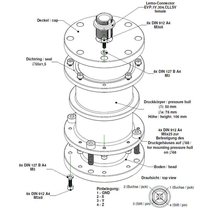 Sensor pressure hull for measurements under water