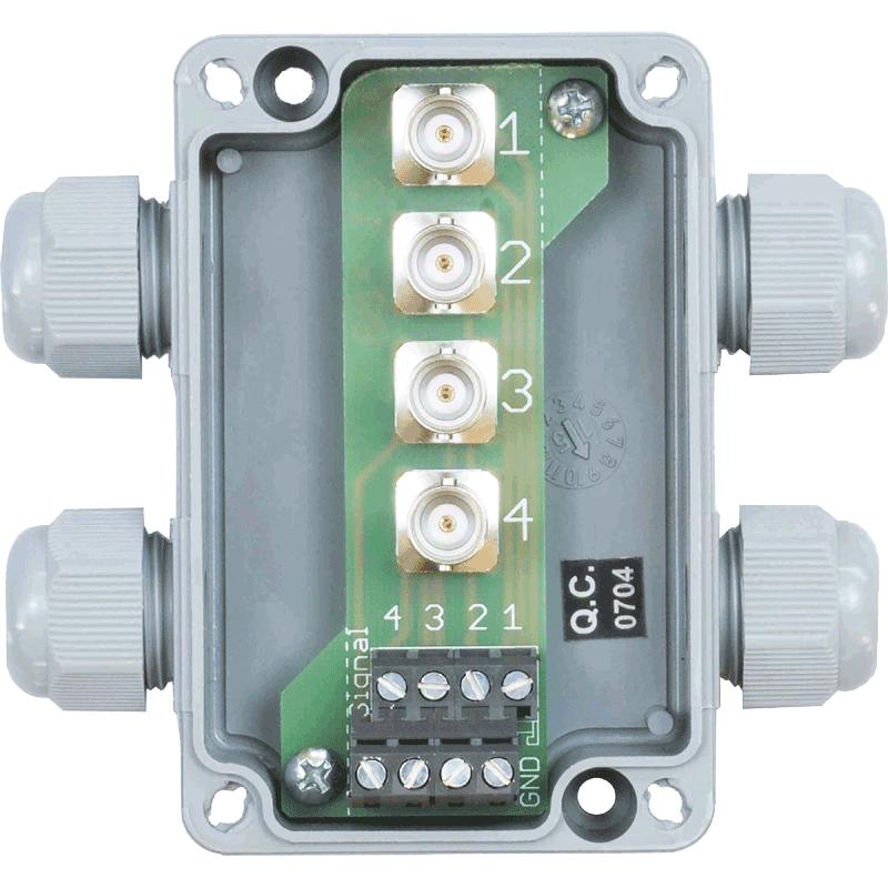 Quadruple BNC connection box for IEPE sensors