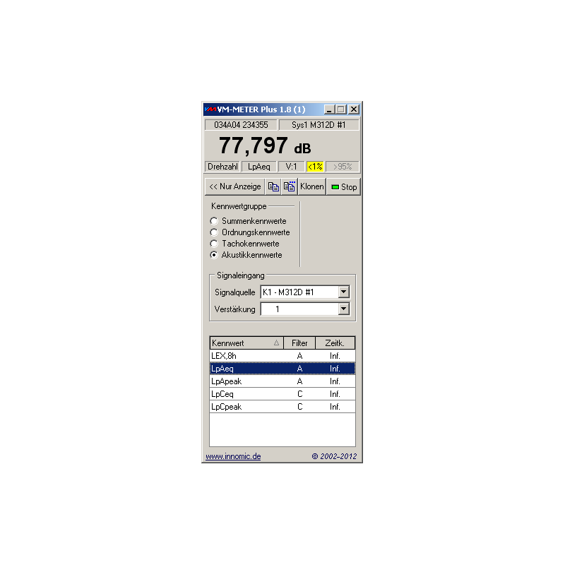 By means of the clone function, up to four VM-METERs with different settings can measure simultaneously