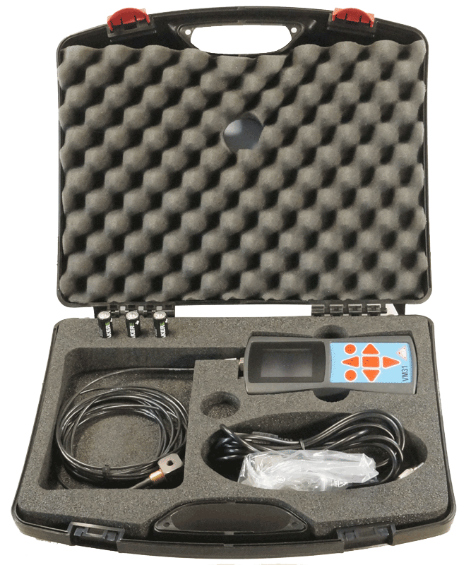 Complete measuring kit for hand-arm vibration measurement, including sensor and accessories