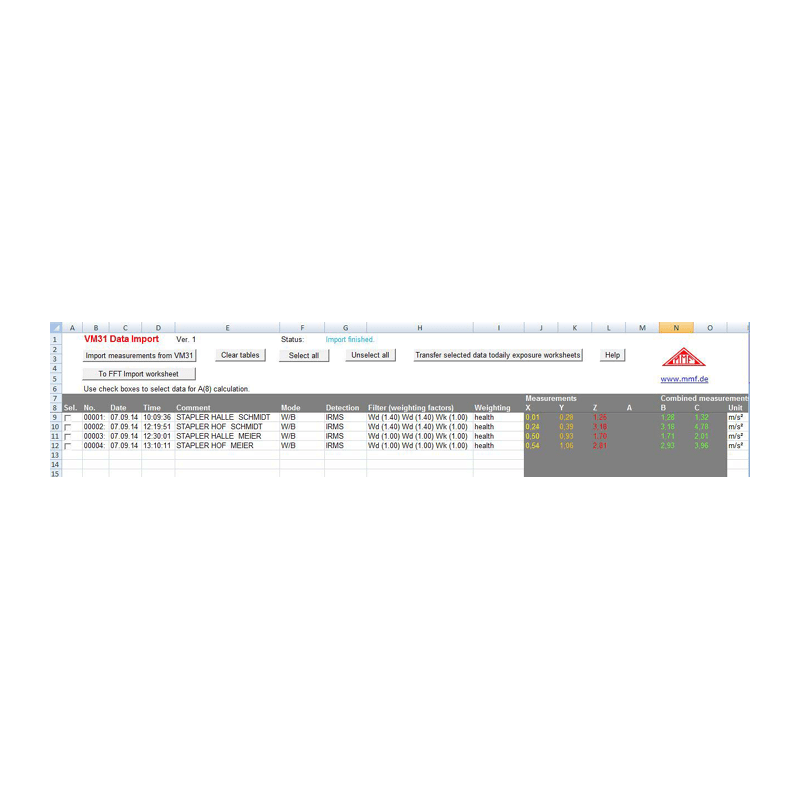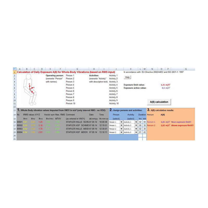 Excel macro for calculating the daily exposure value A(8) and generating standard-compliant reports