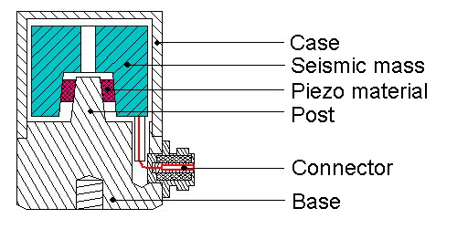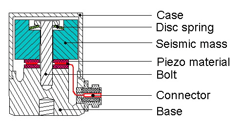 3. Accelerometer DesignsThe basic function, i.e. the conversion of mechanical acceleration into an electric signal, is identical for all kinds of piezoelectric accelerometers. The reason for using different piezoelectric systems is their individual suitability for various measurement tasks and their varying sensitivity to environmental influences.We use three different mechanisms for the mechanical-to-electrical conversion. Our type codes “KS”, “KD” and “KB” are derived from these designs.Shear system (“KS”)Compression system (“KD”)Bending system (“KB”)The following table summarizes the advantages and disadvantages of these three designs:Shearing“KS…”Compressing“KD…”Bending“KB…”AddvantagesLow temperature transient sensitivityLow base strain sensitivityHigh sensitivity-to-mass ratioRobustnessTechnological advantagesCost efficient manufacturingBest sensitivity-to-mass ratioDisadvantagesLower sensitivity-to-mass ratioHigh temperature transient sensitivityHigh base strain sensitivityFragileRelatively high temperature transient sensitivityShear design is applied in the major part of modern accelerometers due to its better performance.The following illustrations show the three designs in existing accelerometers.