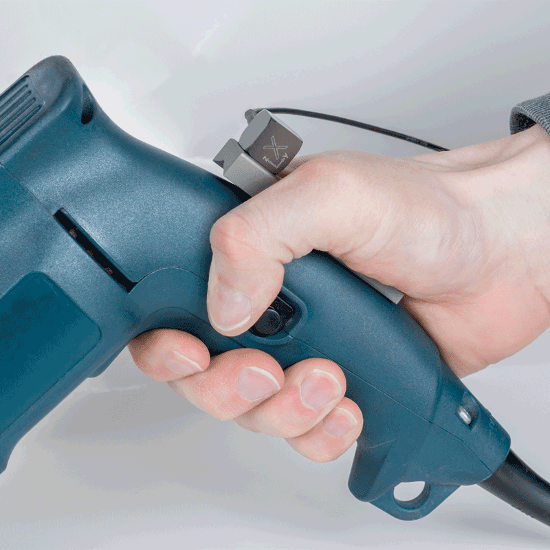 Handgehaltener Adapter für Messungen mit Aufnehmern mit M5-Gewinde auf gekrümmten Oberflächen.