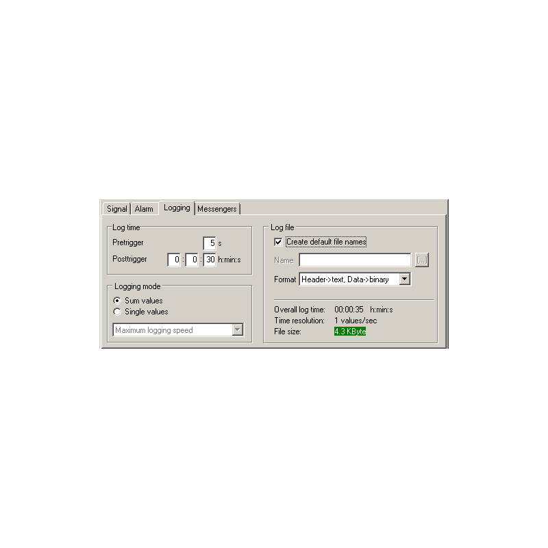 Speichert Messwerte im Binär- oder Textformat zur Weiterverarbeitung mit anderer Software