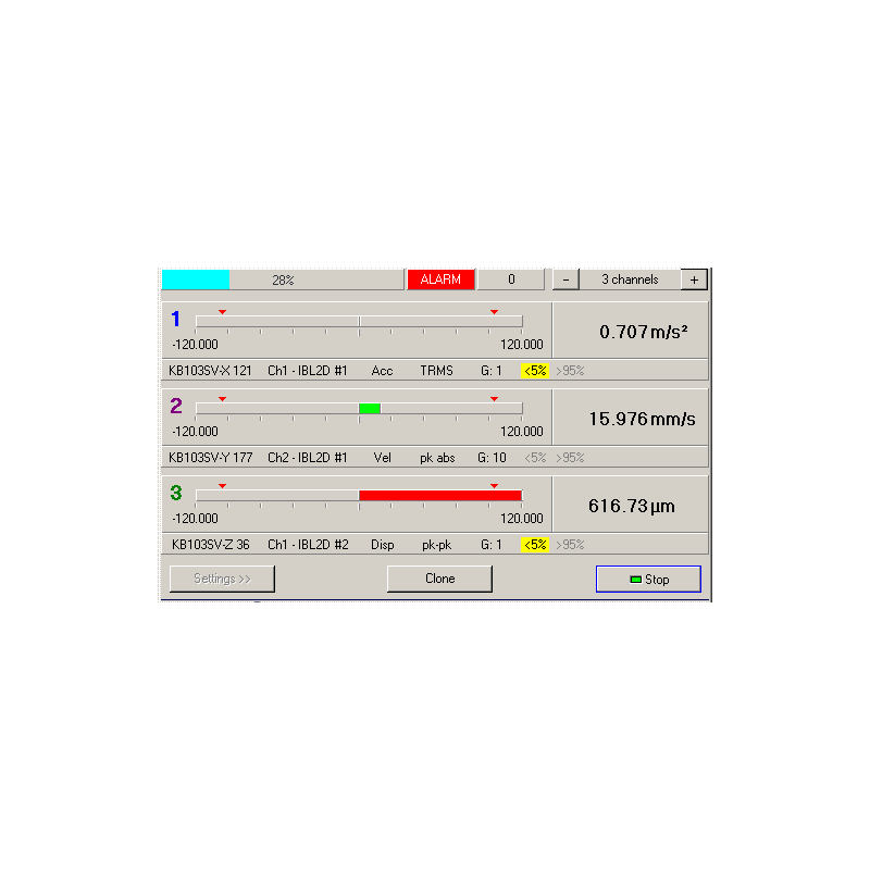 Aufzeichnung der Schwingbeschleunigung, mit VM-REC+ auch Schwinggeschwindigkeit und Schwingweg