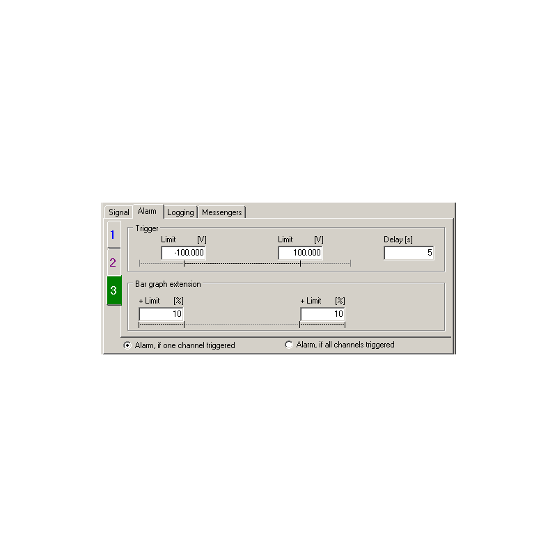 Aufzeichnung des Amplitudenverlaufes bei Grenzwertüberschreitung