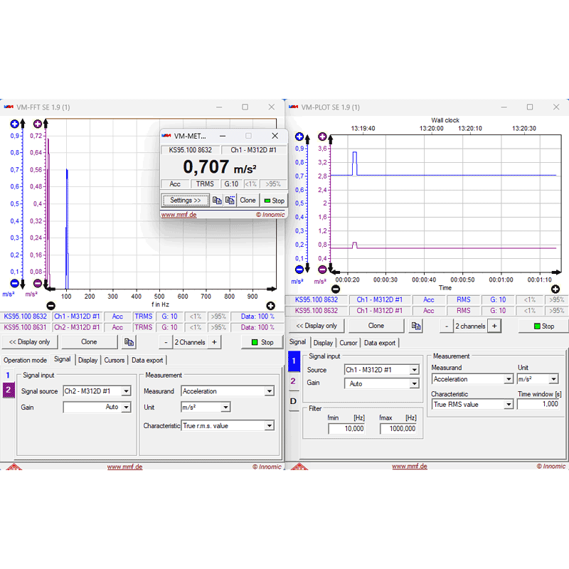 VibroMetra-Kombilizenz mit Analysator, Messwertanzeige und Plotter für 2 Kanäle