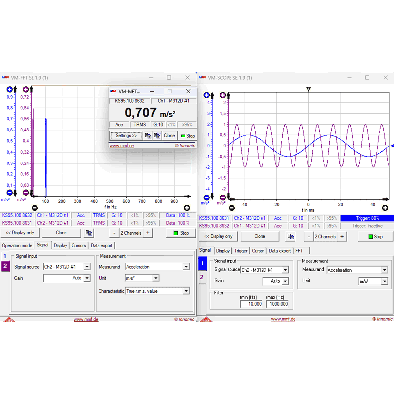 VibroMetra-Kombilizenz mit Analysator, Messwertanzeige und Oszilloskop für 2 Kanäle