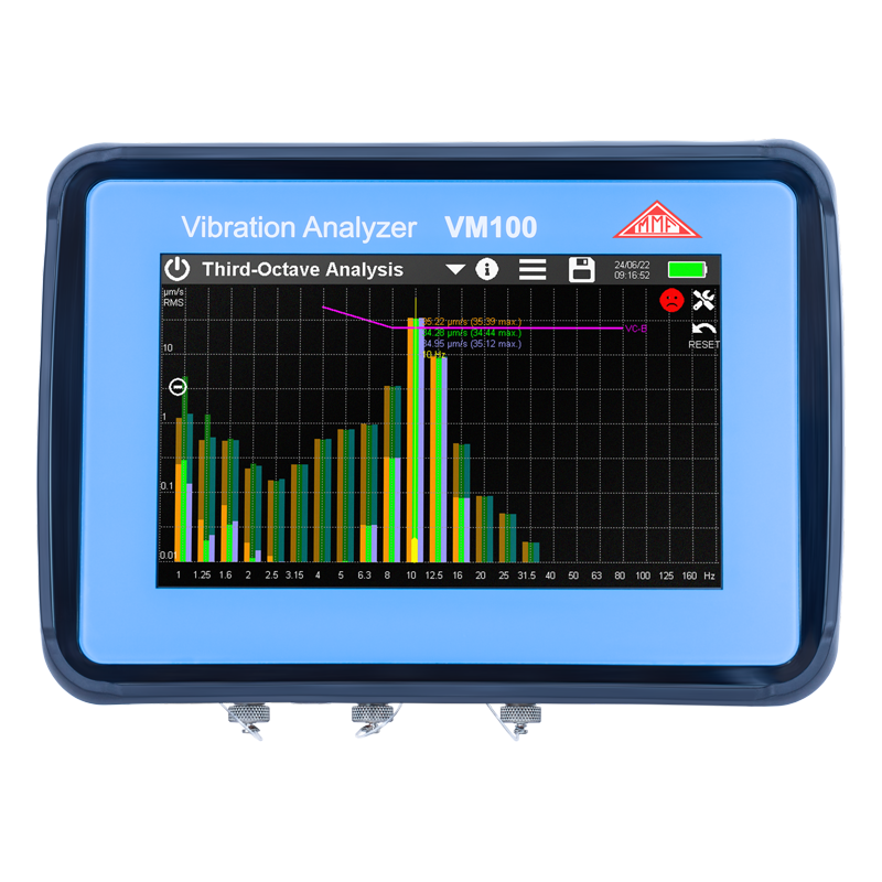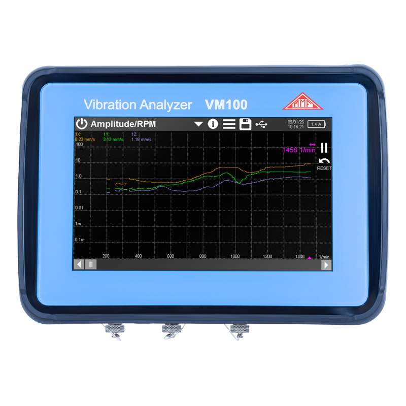 Die Schwingungsanalysatoren der Reihe VM100 wurden für typische Aufgaben der Schwingungsmessung in Laboren und Produktionsstätten entwickelt. Trotz ihres großen Funktionsumfangs steht die Benutzerfreundlichkeit im Vordergrund.