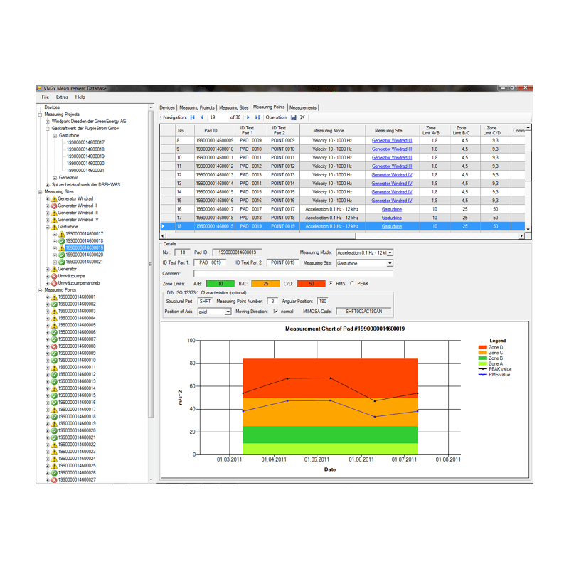 USB-Interface, PC-Software zur Messpunktverwaltung nach MIMOSA-Konvention und zur Messauswertung
