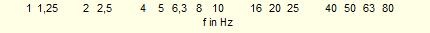 Die Beschriftung der Frequenzachse kann in Oktavbändern (bzw. Terz, 1/6 Oktave) oder dekadisch erfolgen: