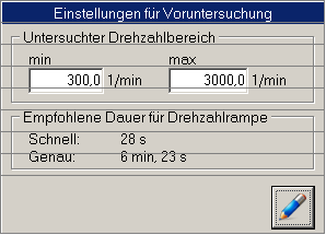 Die Einstellungen für die Voruntersuchung beschränken sich auf die Eingabe des durchfahrenen Drehzahlbereichs.