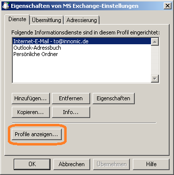 Manche E-Mail Programme erwarten die Übergabe eines Profilnames, wenn mit ihnen eine Verbindung hergstellt werden soll. Das ist z.B. bei Outlook der Fall. Dazu kann das Profil in den Systemeinstellungen unter Mail eingesehen werden: