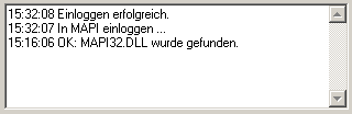 Die Verbindungsversuche zum E-Mail-Programm und das Ergebnis werden hier ausgegeben. Ebenso tauchen hier Einträge für versandte E-Mails auf.