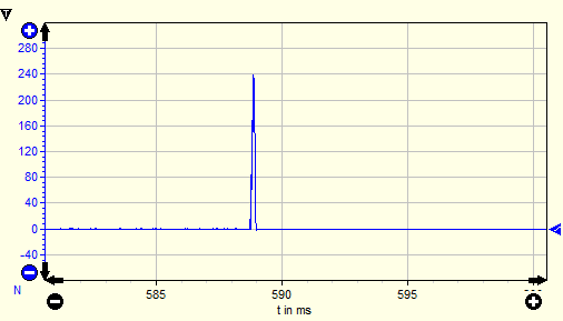 Zeitsignal des Schlages mit dem Impulshammer. Das Stoßsignal ist deutlich zu erkennen.