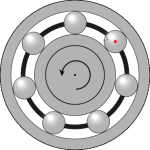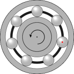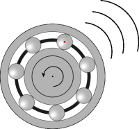 Der beschädigte Wälzkörper erzeugt beim Kontakt mit Innen- und Außenring periodische Stoßsignale.