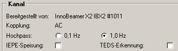Schwinggeschwindigkeitssensoren mit Tauchspulenprinzip erzeugen ihr Spannungssignal ohne Fremdenergie. Die IEPE-Speisung ist daher zu deaktivieren.