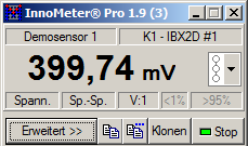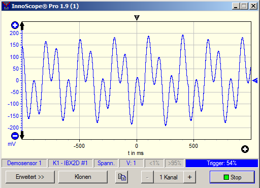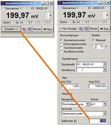 Ändern Sie das Zeitenster auf 5 s und die Anzeige der Kennwerte wird nicht mehr so stark schwanken, da sich kurzzeitige Änderungen durch das längere Zeitfenster nicht mehr auswirken.