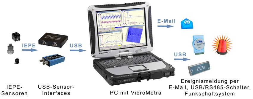 VibroMetra ist modular. Es kann mit einem Sensor betrieben werden aber auch mit mehreren. Es kann ein Messprogramm auf dem Bildschirm arbeiten oder auch viele. Alles zeitgleich und live. VibroMetra passt sich Ihrem Aufgabenumfang genau an und wächst bei Bedarf mit.