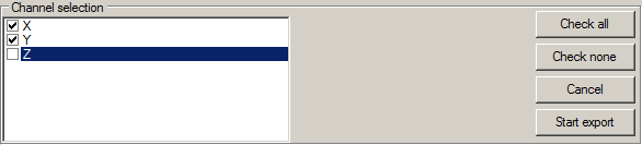 After having selected the format, you decide which channels are to be exported. You can deselect unimportant channels to reduce the amount of data.
