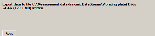 This option exports data in IDS format. This format is the VibroMetra format so that all additional pieces of information like wall clock time, notes, masks, etc. are saved as well. VibroMetra exports the signals of the measuring channels (ACh) as well as the rotation speed signal (DCh).
