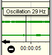 The cursor is shown as vertical line at the position of play-back. You can move it by mouse after you paused play-back. As moving the cursor interrupts the time consistence of the raw data signal, the instruments are resetted after cursor movement.