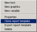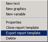 Functions related to report templates are shown in a context menu. There are also import and export functions to exchange report templates between different