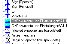 Variables are filled by the VibroMetra modules, for example, with measuring values or settings.
