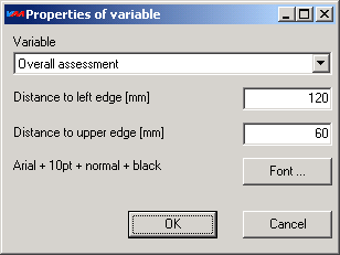 Report templates  are shown in a tree structure of printable elements. Each of these elements has properties like its position on the page. Three types of report elements are selectable: