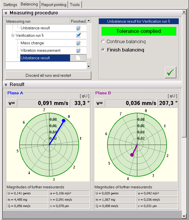 VM-BAL is intended for field balancing in one or two planes. Ideally, the rotor is balanced directly in its regular operating condition.