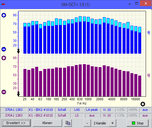 Acoustic measurements: The frequency range of 16 .. 16000 Hz is used. Octaves and fractions of 1/3 and 1/6 octaves are analyzed.